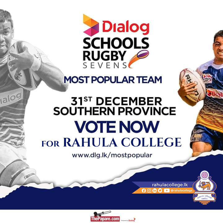 Dec312021 VOTING IS NOW OPEN!Make your school the Dialog Schools Rugby Sevens Most Popular School and help the school win Rs. 50,000!Start VOTING! Voting closes at the Cup final kick-off! Vote Now Related Categories: Featured, Grade 1 - 5, Grade 12- 13, Grade 6 - 11, Notice BoardDecember 31, 2021 Share this post Share on FacebookShare on Facebook Share on LinkedInShare on LinkedIn Share on XShare on X Share on WhatsAppShare on WhatsApp Related PostsCongratulations! | Rahula College President’s Scouts 2024July 23, 2025Congratulations! | G. C. E. Advanced Level 2024July 16, 2025G.C.E. O/L 2024(2025) Results SummaryJuly 13, 2025Vote for Rahula College – BestWeb.lk 2025July 8, 2025Binuda Bojitha Dominates Junior National Athletic Championship 2025 with Double GoldsJune 21, 2025Dinujaya Honoured with National Chess AwardsJune 4, 2025