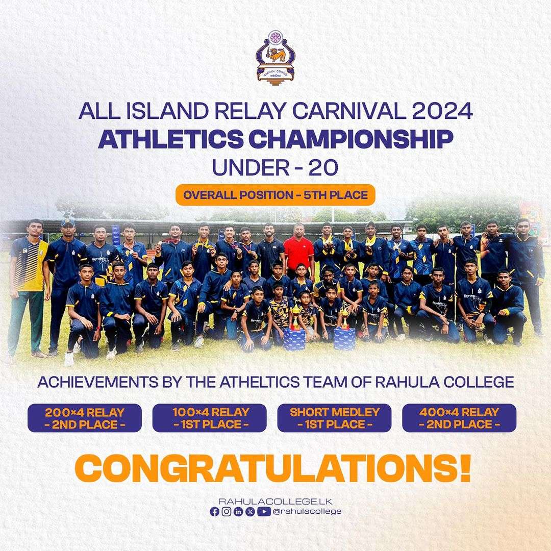 Jul92024 • Overall 5th place• Under 20 equal championship Under 20• 100×4 – 1st place• 200×4 – 2nd place• 400×4 – 2nd place• Short Medley – 1st place Related Categories: Featured, Grade 1 - 5, Grade 12- 13, Grade 6 - 11, Notice BoardJuly 9, 2024 Share this post Share on FacebookShare on Facebook Share on LinkedInShare on LinkedIn Share on XShare on X Share on WhatsAppShare on WhatsApp Related PostsCongratulations! | Rahula College President’s Scouts 2024July 23, 2025Congratulations! | G. C. E. Advanced Level 2024July 16, 2025G.C.E. O/L 2024(2025) Results SummaryJuly 13, 2025Vote for Rahula College – BestWeb.lk 2025July 8, 2025Binuda Bojitha Dominates Junior National Athletic Championship 2025 with Double GoldsJune 21, 2025Dinujaya Honoured with National Chess AwardsJune 4, 2025