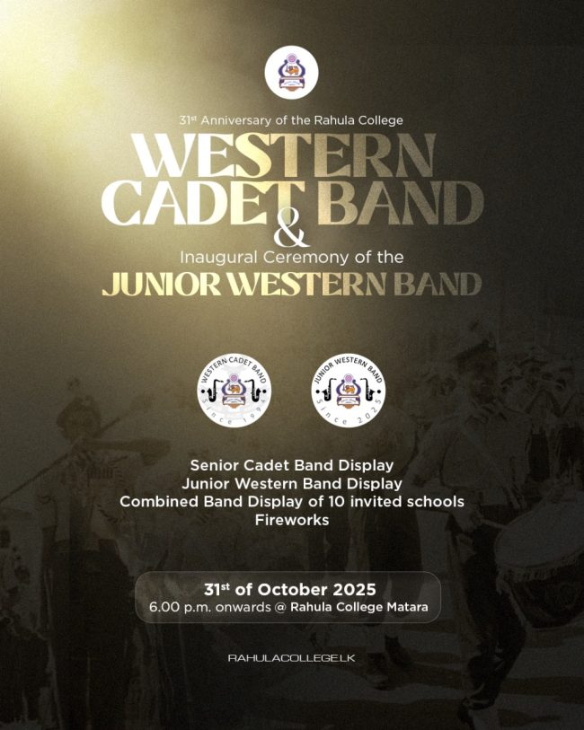 Rahula College proudly announces a truly special event marking the institution’s rich musical tradition. We invite all well-wishers, students, and alumni to attend the 31st Anniversary Celebration of the esteemed Rahula College Western Cadet Band. This milestone celebration will be held concurrently with the Inaugural Ceremony of the new Junior Western Band, symbolizing the passing…