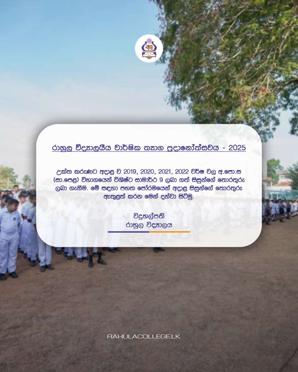 Dec132025 Fill Now! Make sure to submit the form with correct and accurate details. #RahulaCollege#RahulaCollegeLK Related Categories: Featured, Grade 12- 13, Grade 6 - 11, Notice BoardDecember 13, 2025Leave a comment Share this post Share on FacebookShare on Facebook Share on LinkedInShare on LinkedIn Share on XShare on X Share on WhatsAppShare on WhatsApp Related PostsRahula College Takes the International StageDecember 12, 2025Information Retrieval | G.C.E. (A/L) University Selections (2019–2024)November 25, 2025Newly appointed Executive Committee of Team Rahula Web | 2025/26!November 11, 2025Outgoing Executive Committee of Team Rahula Web | 2024/25.November 10, 2025Best Of Luck To Everyone! | AL Examination 2025November 9, 202531st Anniversary of the Rahula College Western Cadet BandOctober 26, 2025