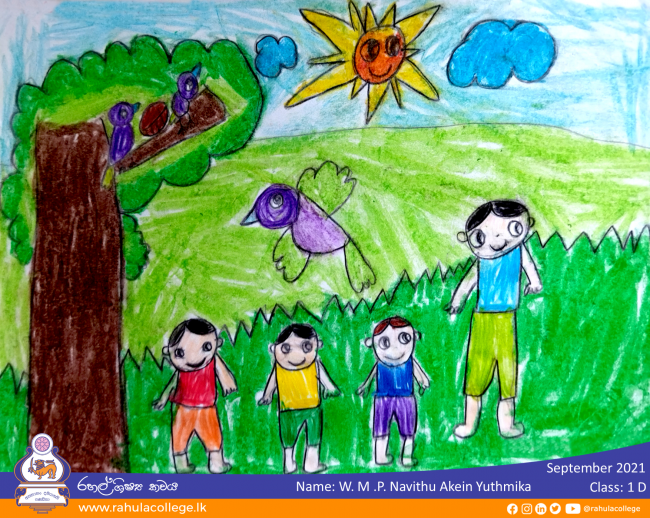 ZoomDetails කුරුලු පැටවාට උදවු කල යහළුවෝArtsBy Rahula Web TeamSeptember 22, 2021Leave a commentW. M. P. Navithu Akein Yuthmika Class: 1 D