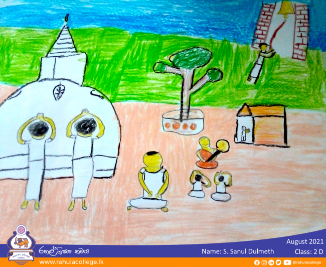 ZoomDetails පෝදා ආගමික වතාවත්වල යෙදෙන බැතිමතුන්ArtsBy Rahula Web TeamAugust 26, 2021Leave a commentS. Sanul Dulmeth Class: 2 D