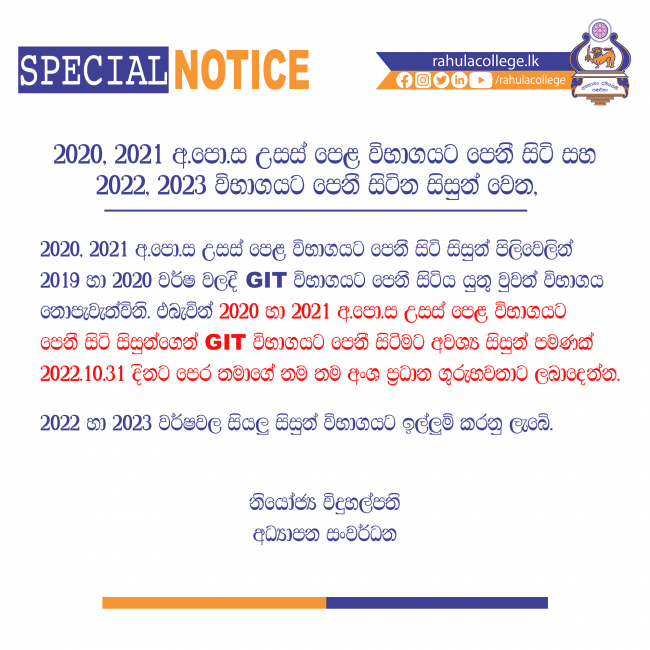 Rahula College, We proudly appreciate the year teams for completing the school renovation projects parallel to the vision 2020 program.