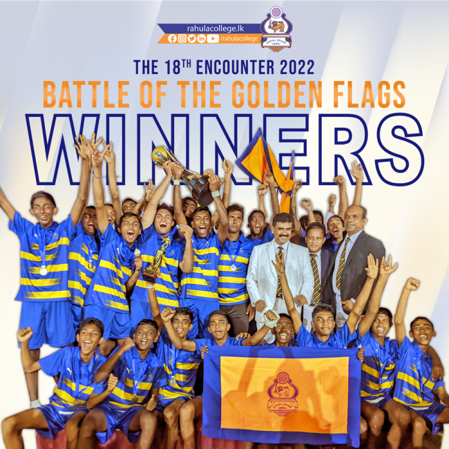 Battle Of The Golden Flags. 18th Annual Football Encounter ~ 2022 Rahula College vs St. Thomas’ College, Matara. Rahula College won with Goals 3 to 0. Congratulations !!!