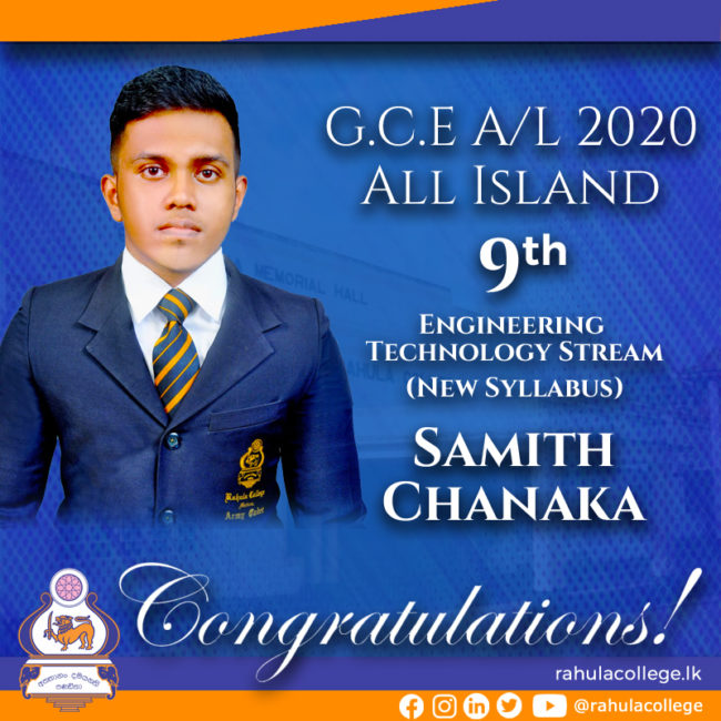 G. C. E. A/L 2020 All Island Ninth PlaceEngineering Technology Stream (New Syllabus) Congratulations, Samith Chanaka!