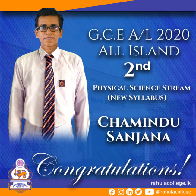 G. C. E. A/L 2020 All Island Second Place Physical Science Stream (New Syllabus) Congratulations, Chamindu Sanjana!