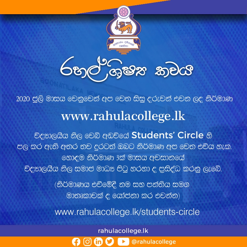 ජූලි52021 rahulacollege.lk/students-circle Related Categories: 1 - 5 ශ්රේණි, 12 - 13 ශ්රේණි, 6 - 11 ශ්රේණි, දැන්වීම් පුවරුව, විශේෂාංගජූලි 5, 2021 Share this post Share on FacebookShare on Facebook Share on LinkedInShare on LinkedIn Share on XShare on X Share on WhatsAppShare on WhatsApp Related Posts21වැනි රන් දද මහා සටන | අදසැප්තැම්බර් 6, 202521වැනි රන් දද මහා සටන | ආරම්භය සනිටුහන් කිරීමඅගෝස්තු 27, 202521වැනි රන් දද මහා සටනඅගෝස්තු 25, 2025මාතර රහුල විද්යාලයීය පොලිස් ශිෂ්ය භට කණ්ඩායමට සමස්ත ශූරතාව!ජූලි 30, 2025රාහුල විද්යාලීය ජනාධිපති බාලදක්ෂ පදක්කම්ලාභීන් 2024ජූලි 23, 2025උණුසුම් සුබ පැතුම්! | අ.පො.ස. උසස් පෙළ 2024ජූලි 16, 2025
