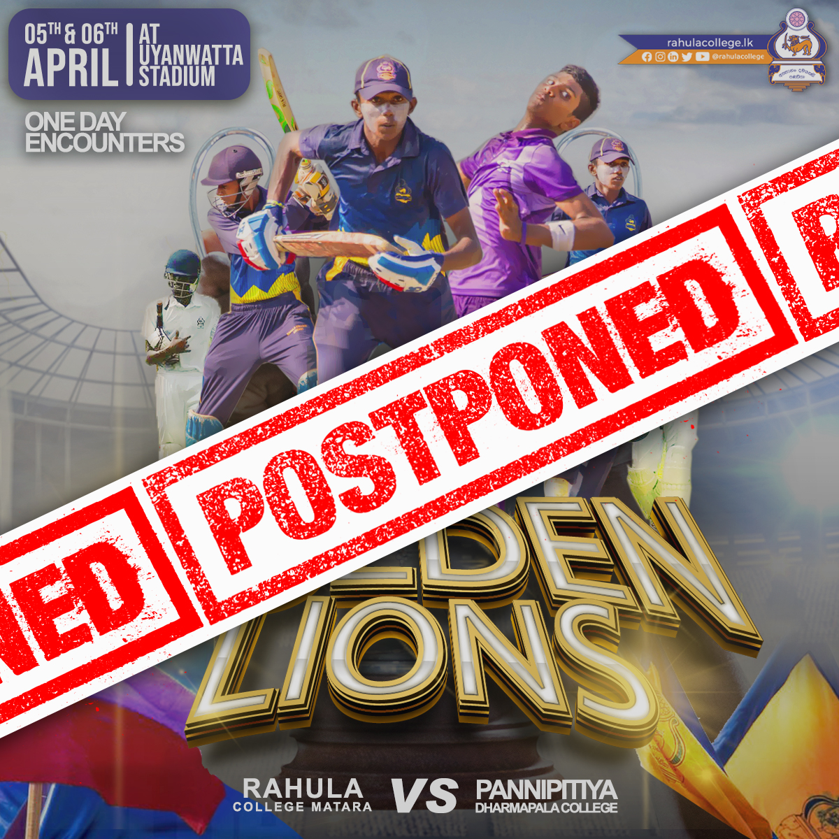 රටතුල උද්ගතව ඇති තත්ත්වය හේතුවෙන් “battle of the golden lions” ක්රිකට් තරඟය කල්දමා තිබේ. නව දිනයන් ඉක්මනින් ප්රකාශයට පත් කෙරේ.