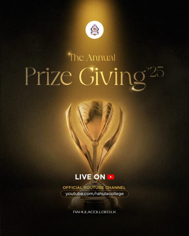 සජීවී විකාශය – රාහුල විද්යාලීය වාර්ෂික ත්යාග ප්රදානෝත්සවය 2025 1 - 5 ශ්රේණි, 12 - 13 ශ්රේණි, 6 - 11 ශ්රේණි, දැන්වීම් පුවරුව, විශේෂාංගBy [email protected]දෙසැම්බර් 28, 2025Leave a commentWatch Live