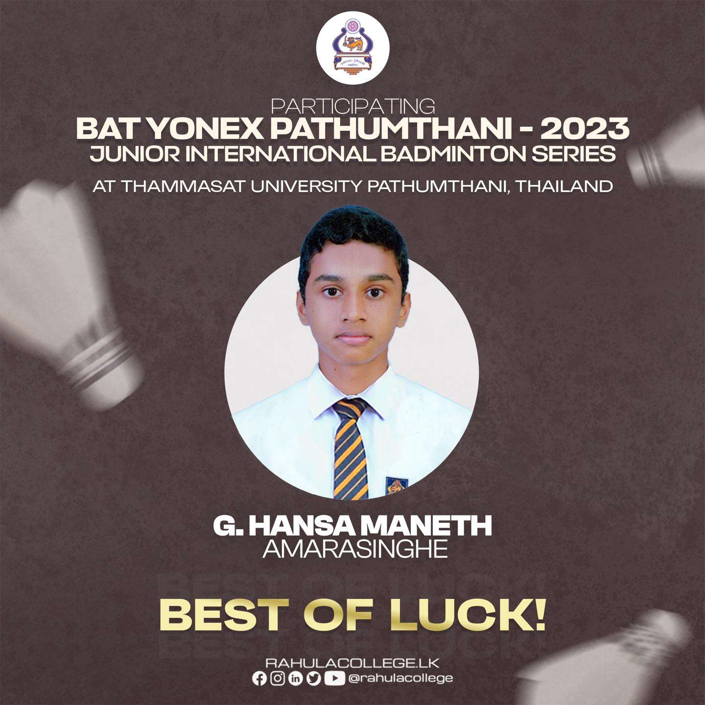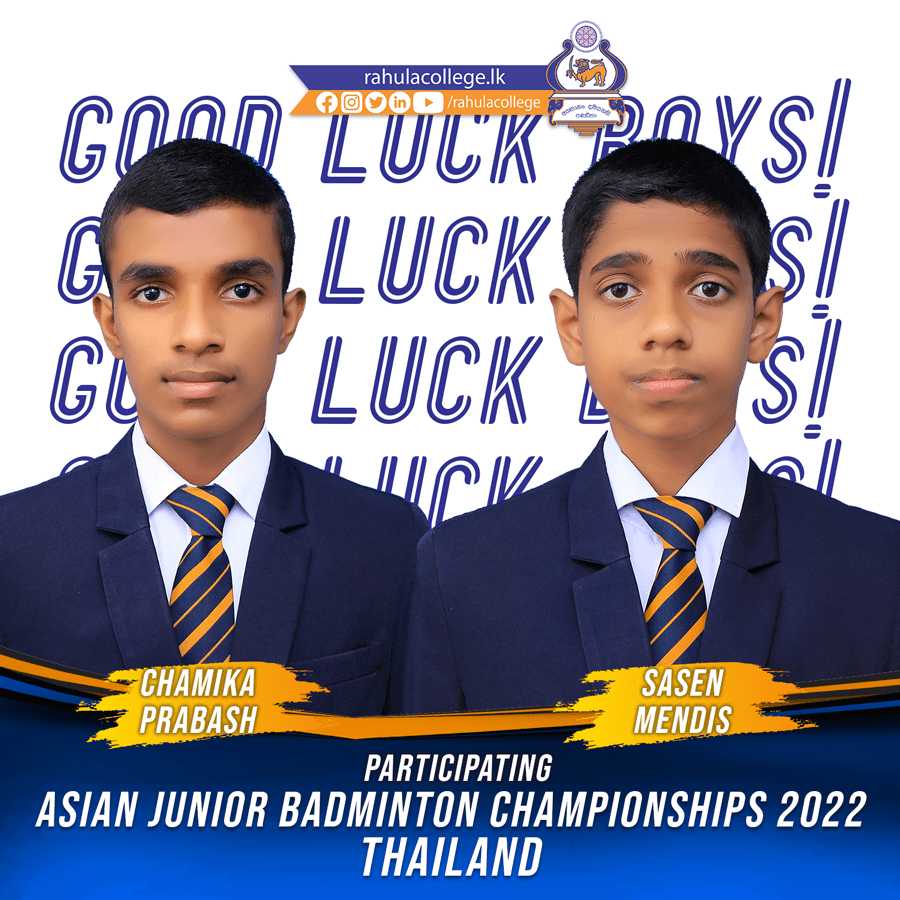 තායිලන්තයේ පැවැත්වෙන කනිෂ්ඨ ආසියනු බැඩ්මින්ටන් තරගාවලියට සහභගී වන චාමික බ්රභාශ් සහ සසෙන් මෙන්ඩිස් හට රාහුල විද්යාලයීය උණුසුම් සුබපැතුම් !