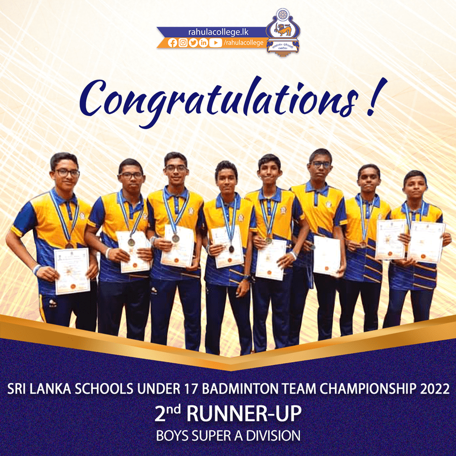 2022 වසරේ ශ්රී ලංකා පාසල් අවුරුදු 17න් පහළ බාලක සුපිරි ඒ කොටසේ බැඩ්මින්ටන් කණ්ඩායම් ශූරතාවලියේ දෙවැනි අනුශූරතාව රාහුල විද්යාලය දිනා ගන්නා ලදී.