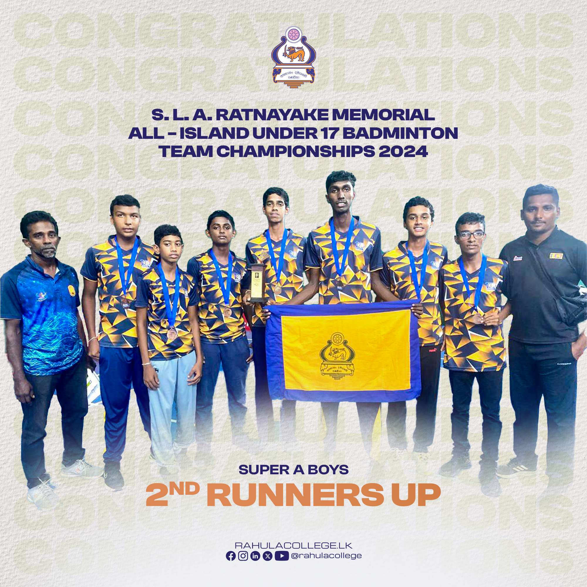 2024 පාසල් බැඩ්මින්ටන් ශූරතාවලියේ අවුරුදු 20න් පහළ පන්තියේ 3න් වන ස්ථානය ලබා ගත් රාහුල විද්යාලයේ බැඩ්මින්ටන් කණ්ඩයමට සුබ පැතුම්