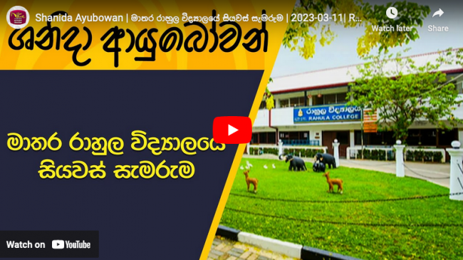 රාහුල විද්යාලයීය සියවස් සැමරුම පිළිබඳ ජාතික රූපවාහිනියේ විකාශය වූ ශනිදා ආයුබෝවන් සජීවී වැඩසටහන.