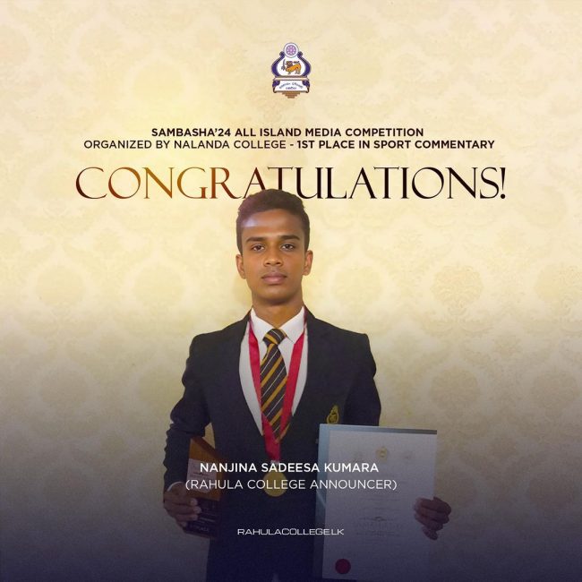 සමස්ථ ලංකා මාධ්ය තරඟාවලියේ ක්රීඩා විචාරය කිරීමේ තරඟයේ ප්රථම ස්ථානය දිනාගත් නන්ජින සදීශ සිසුවාට උණුසුම් සුබ පැතුම්!