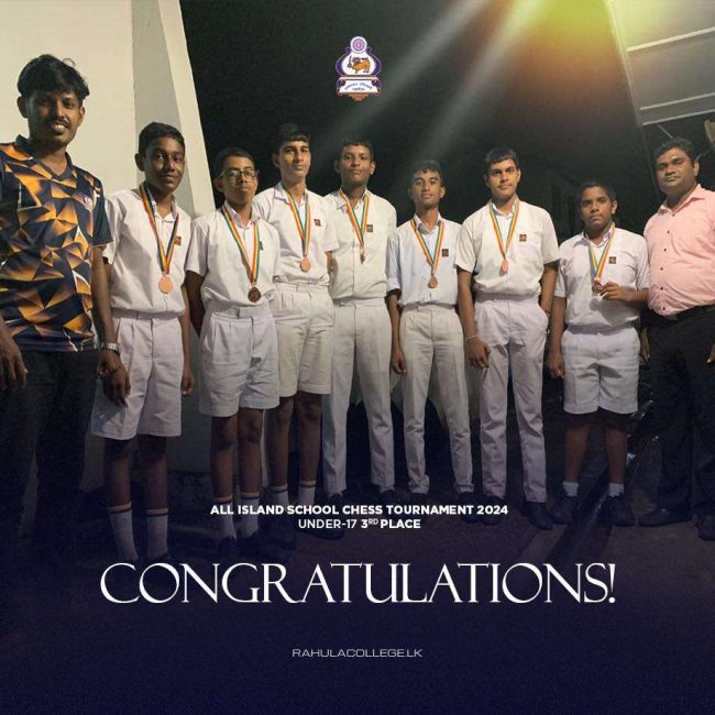 සමස්ත ලංකා චෙස් තරඟාවලියේ 17 පහළ තෙවන ස්ථානය ලබා ගත් රාහුල විද්යාලලීය චෙස් කණ්ඩායමට උණුසුම් සුබ පැතුම්