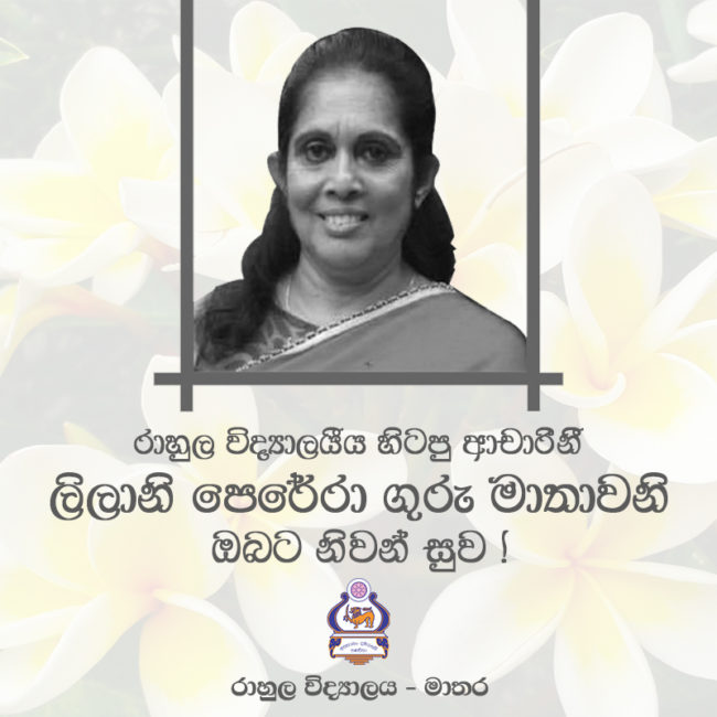 රාහුල විද්යාලයීය හිටපු ආචාරිනී ලිලානි පෙරේරා ගුරු මාතාවනි, ඔබට නිවන් සුව!