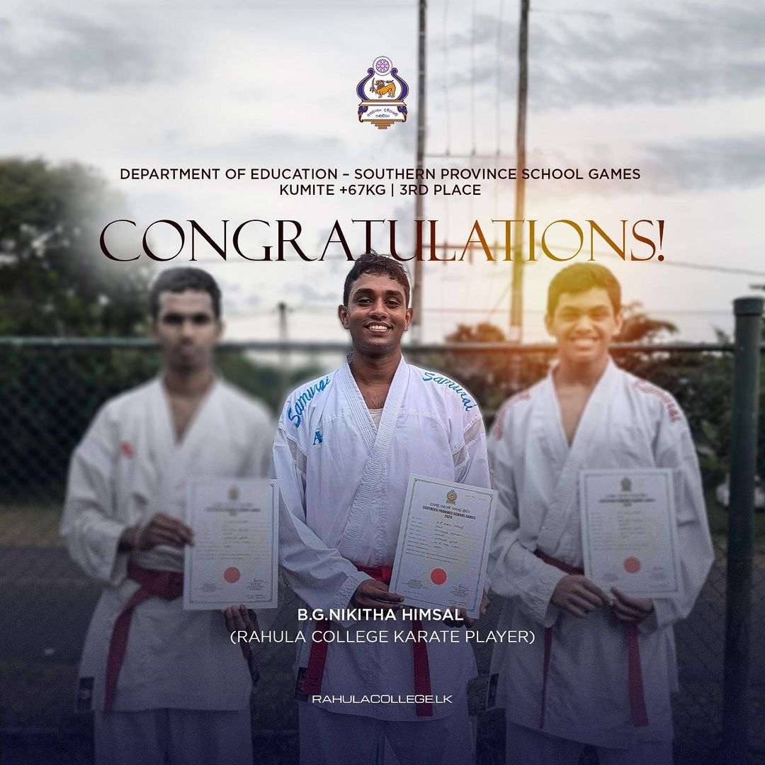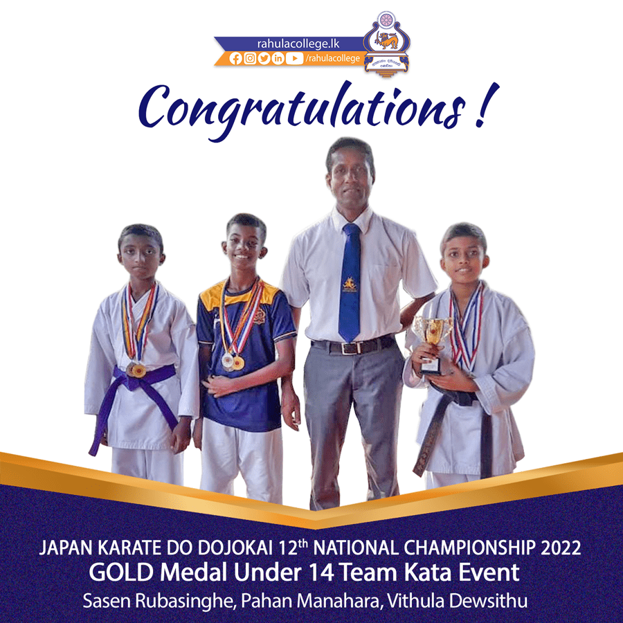 2022 දෙසැම්බර් 24 වන දින මාතර රුහුණු විශ්ව විද්යාලයේදී පැවති 2022 ජපාන කරාතේ Do Dojokai 12 වැනි ජාතික ශූරතාවලියේ,14න් පහළ කණ්ඩායම් කාතා ඉසව්වෙන් රන් පදක්කම දිනා ගැනීමට රාහුල විද්යාලය සමත් විය. ක්රීඩකයන් වූ සසෙන් රූබසිංහ, පහන් මනහර, විතුල දෙව්සිතු සහ පුහුණුකරු එස්.රූබසිංහ මහතා ඇතුළු කණ්ඩායමට රාහුල විද්යාලයීය උණුසුම් සුබ පැතුම් !