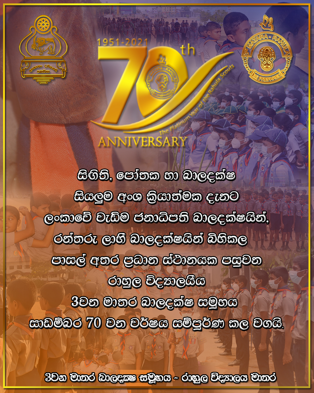 3 වන මාතර බාලදක්ෂ සමූහය අභිමානවත් 70 වන වර්ෂ පූර්ණය සම්පූර්ණ කළ වගයි.